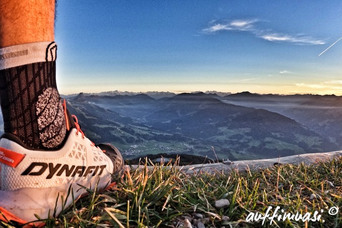 Eines ist klar, ich bin nicht die Zielgruppe für den Schuh. Dennoch macht es auch mir Spaß, manchmal so schnell als möglich den Berg hochzulaufen und genau dafür ist der Dynafit Sky DNA gebaut, und das absolut kompromisslos. Das zeigt sich schon beim Einstieg in den Schuh, er ist einfach knackig eng. Man steht super direkt und tief am Boden, was vor allem bei steilen Ansteigen super ist. Die Kraft geht direkt auf den Untergrund, ohne auch nur den Hauch eines Umweges. Sehr gut finde ich auch, dass man dem Sky DNA ein ordentliches Profil gegeben hat. Das schafft nochmal mehr Vortrieb. Ja, der Sky DNA ist extrem direkt und kompromisslos. Doch der Pebax-Schaum vermag es mich zu überraschen. Denn ein Hauch von Komfort gibt es mit ihm schon. Dennoch empfiehlt es sich eine Einlegesohle zu nutzen, wenn man nicht gerade um das Stockerl eine Sky-Race kämpft. Es macht den Schuh komfortabler.
